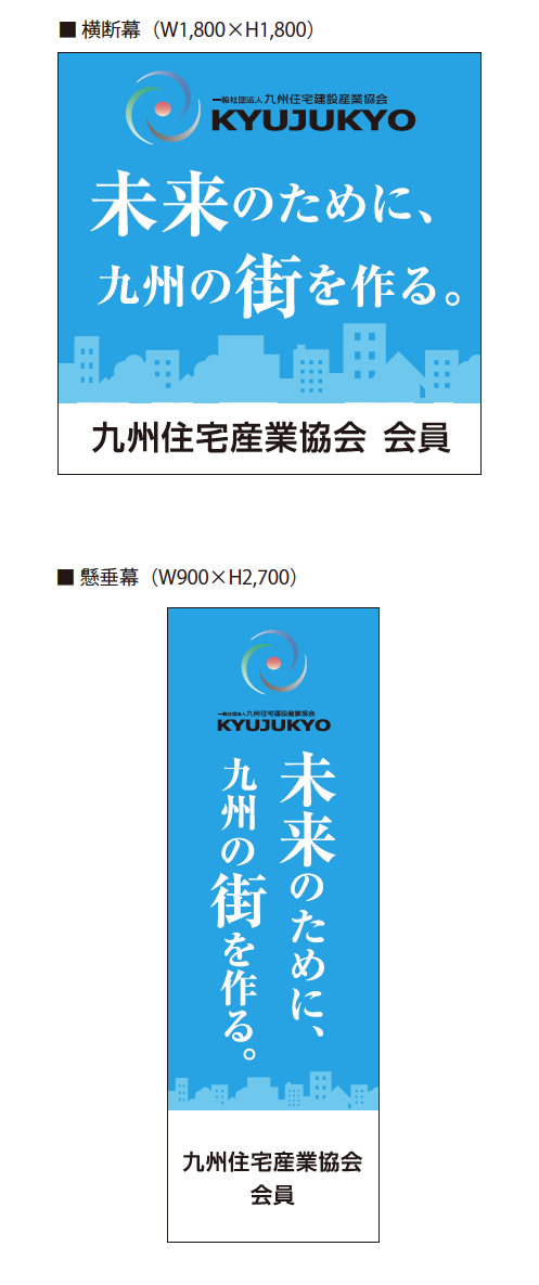 九住協におきましては、平成29年度九住協のブランドを高める施策に力を注ぐことにしており、この度、その一環として試行的に建築現場等に横断幕・懸垂幕をかかげて、九住協のPRに務めることにいたしました。